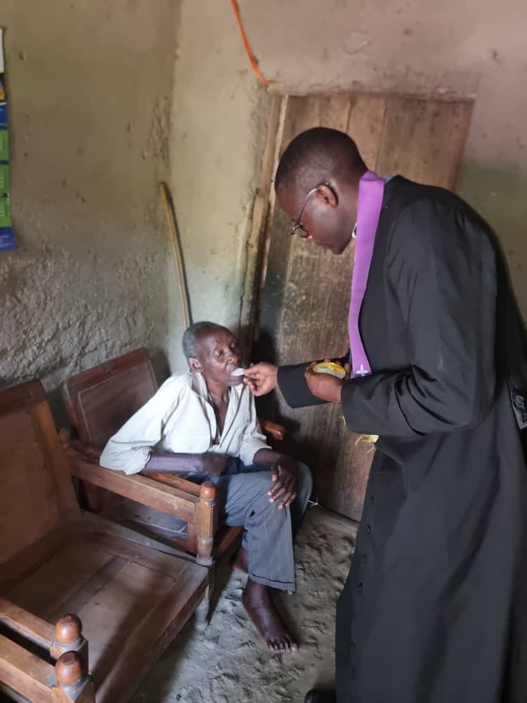Home Visits to the Elderly – Fr. Paul Ssemogerere, C.S.Sp., personally visited several elderly parishioners in their homes, offering a comforting presence and listening ear.